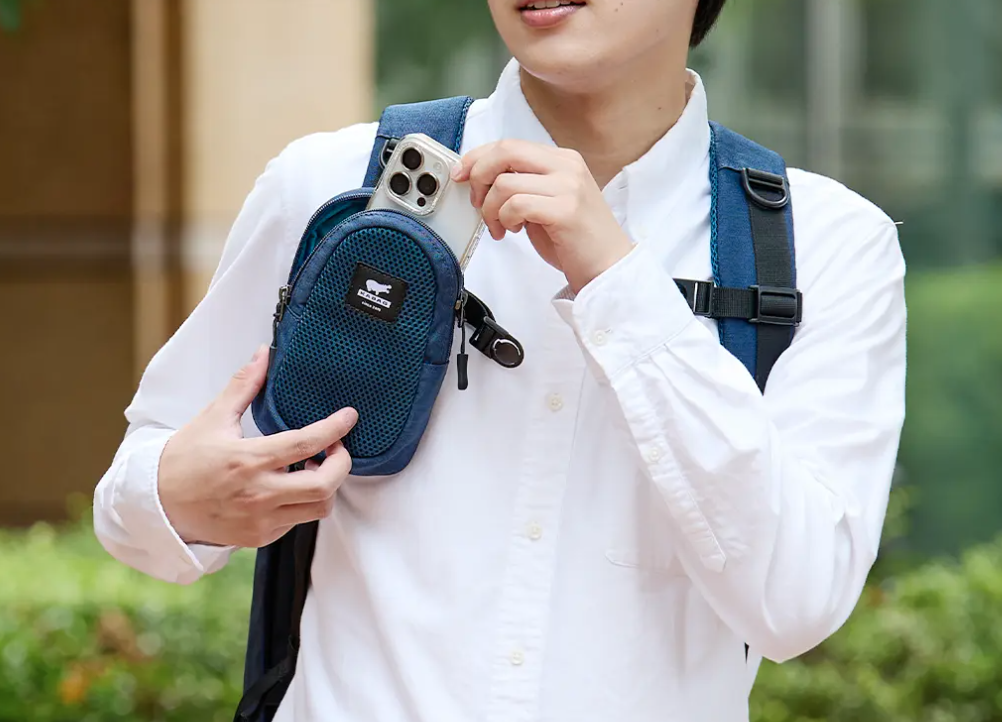 オプションのフック付きポーチをショルダーベルトのDカンに取り付ければ、さらに収納を拡張可能。小物やガジェットを、さらに“自分に近い場所”に置いて持ち運べます。よりスマートにお出かけしたい日に使いたい!
